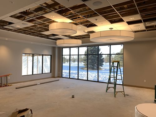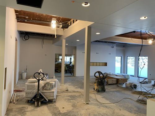 March 10, 2023 Update With the opening of the Maddox and Shortridge Studio simulators, the members have more of an idea of what their new clubhouse will look like. The golf professionals have moved back into the Golf Shop and it is 90% complete. Merchandise will start arriving soon. The project work is moving along in the upper level member dining, banquet, kitchen, restrooms, and office spaces. The south addition that expands the footprint of the building is compete. The new fireplace in the dining room is in place, soffits and walls are going up, and the kitchen work is moving along quickly. The kitchen is expected to be open and able to serve food in the Maddox by late March. The clubhouse is expected to be fully open by mid-April. There will still be much outside work to compete, probably well into May with the "rough" winter we have been experiencing. Overall, this project has gone very well and we are excited to have a fully functional clubhouse sooner rather than later.
