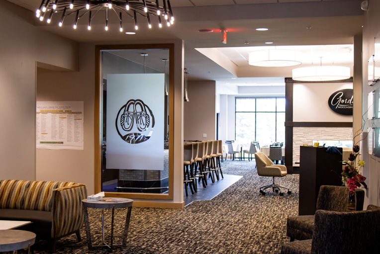 Shortridge Studio – This multi-purpose and golf simulator room has two sims for year-round enjoyment. In addition, this space can be quickly converted over to a private party room. Perfect for intimate meetings, private dinners, birthday parties, or even use half the space for your group function and the other half can remain a simulator to add some fun. The Shortridge Studio is named after Moccasin Creek’s first golf professional, Dean Shortridge. This South Dakota Golf Hall of Fame member retired in the mid-1980’s but remained a fixture at the Club offering golf tips to the members and sage advice to the golf operations team. He was a legend in the community and the golf world around the state and had a major impact on the first several decades of Prairiewood/Moccasin Creek. Dean passed away in 2012 at the age of 87, but his legacy lives on with our current PGA professionals.