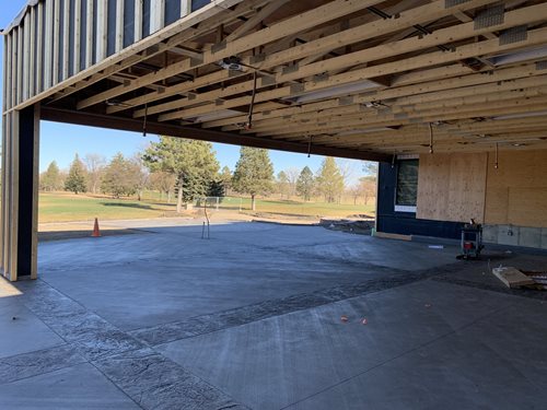 The new Maddox Pub and Shortridge Studio golf simulators are now open! The construction has now moved to the upper level dining, banquet space, restrooms and offices. Also more exterior work is being done and the golf shop reno is moving along nicely. Everything is on-time for an April grand opening!